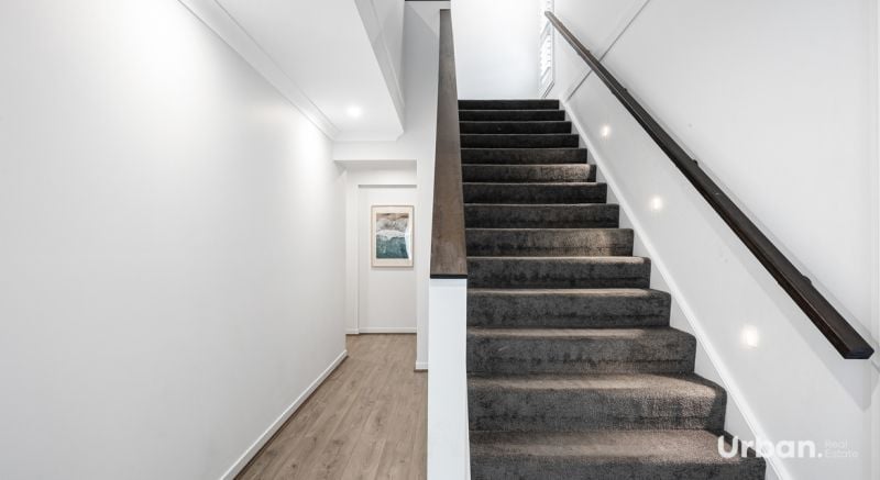 The lower level of the home features an abundant open plan living space, floating floorboards, upgraded laundry with ample storage and outdoor alfresco with extended decking.. The Kitchen comprises of 900mm stainless steel appliances, walk in pantry and stone island bench-tops.