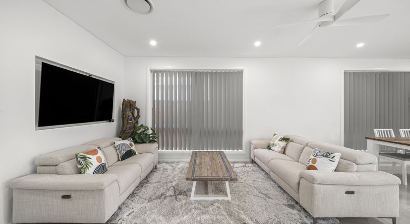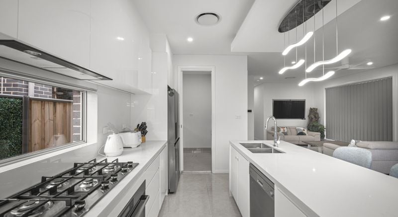 At the heart of the home, 24 Sparrowhawk is spacious and has a good sized kitchen with an impressive walk in pantry –A stunning 40 mm Caesarstone island bench, framed by elegant feature pendant lighting, creates the perfect centrepiece for entertaining. Bring the outside in with a purposely designed to be rectangular & open at the rear doing away with the common L shaped design most single storeys offer maximizing space and practicality.