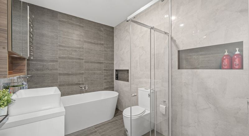 - 300mm x 600mm floor to ceiling tiles with feature wall in all bathrooms