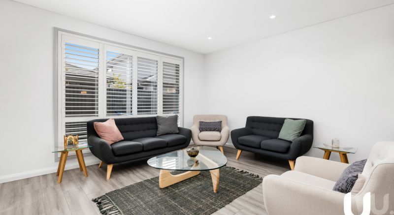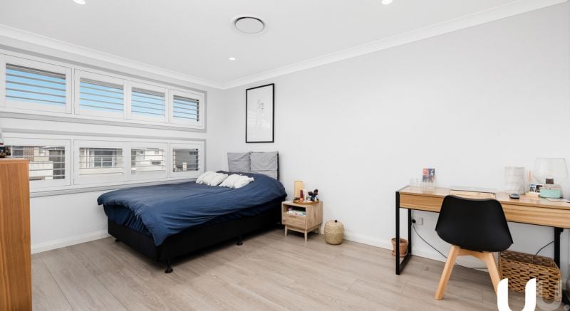 The lower level of the home comprises of a master suite with full bathroom, large foyer and open plan kitchen and living with separate dining area opening out to the low maintenance yard. The kitchen is inclusion rich with matte black taps, smeg appliances and 40mm stone with a waterfall edge.