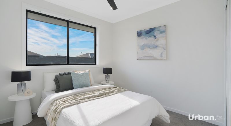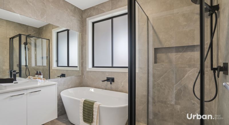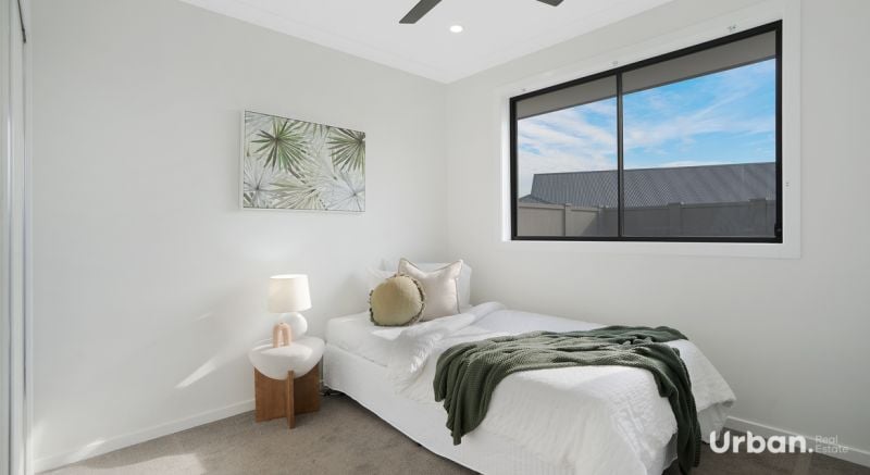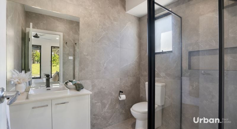 - Four generous bedrooms: The master bedroom is a true retreat, featuring a walk-in robe and a contemporary ensuite with floor to ceiling tiles and stylish black tapware. The remaining three bedrooms are well-sized and include built-in storage and ceiling fans