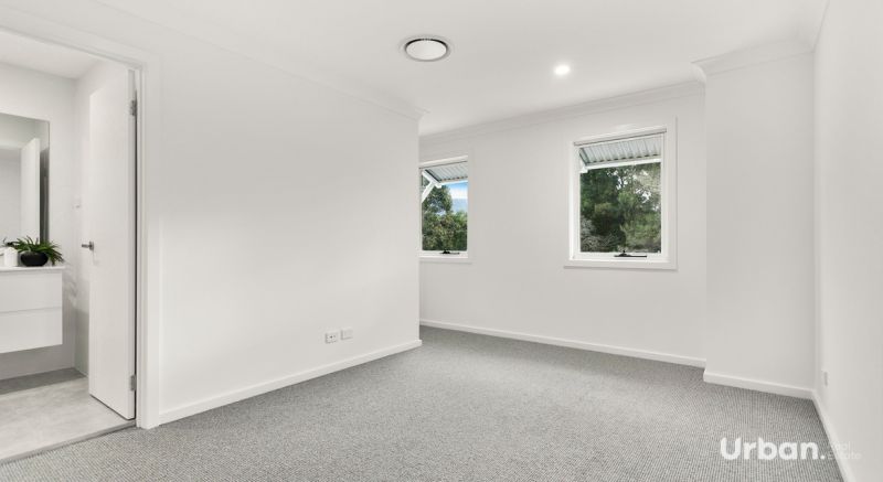 Upstairs, the luxurious master suite provides a peaceful retreat with a walk-in wardrobe and stylish ensuite, while two additional bedrooms with built-in robes and soft grey carpets share a beautifully appointed main bathroom featuring floor-to-ceiling tiles and modern fittings.